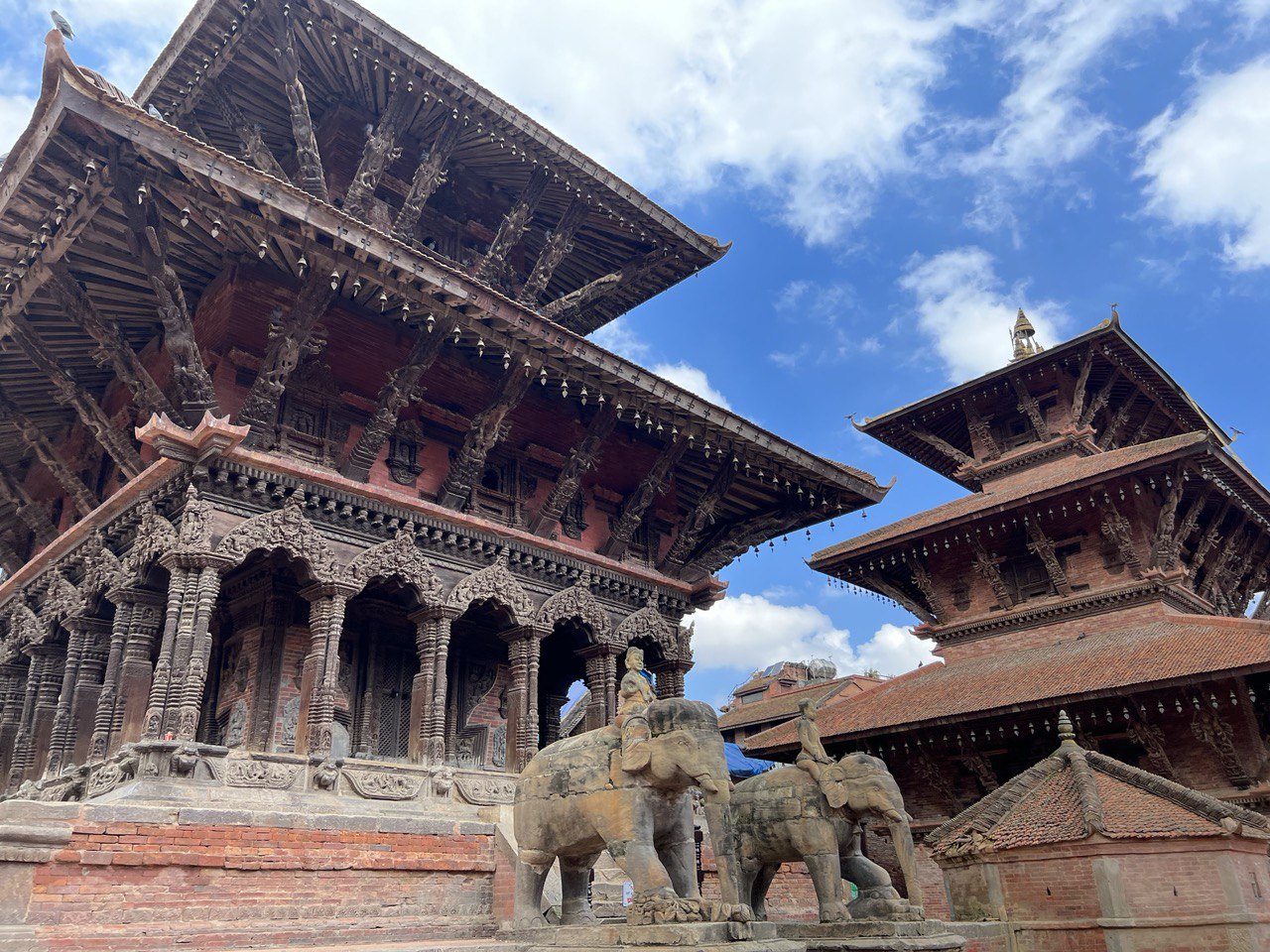 Из Катманду направляемся в соседний город Патан, также известный как Лалитпур. Лалитпур, что переводится как «город красоты», считается одним из наиболее живописных городов Непала. Здесь сохранились изящные храмы и пагоды, построенные древними неварскими мастерами резьбы по дереву. До сих пор Патан — город ювелиров, ремесленников и художников. Искусство здесь окружает везде: на древних улочках города, в храмах и лавочках местных торговцев, где продаются изделия из бронзы, дерева, ювелирных камней, шерсти и кашемира.
